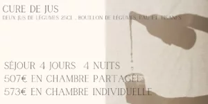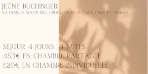 Nous vous proposons aussi des séjours plus courts de 4 jours, 4 nuits pour découvrir le jeûne ou la détox.